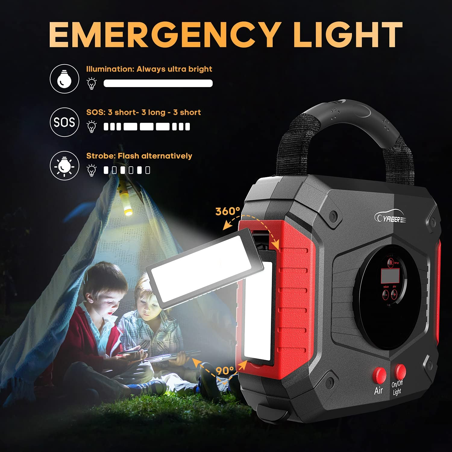 The J3 Car Starter also features a built-in 150PSI air compressor pump, allowing you to inflate your car tires, sports equipment, and inflatable toys effortlessly. The device includes a built-in LED light with a power of 5W, providing bright illumination in emergencies or low-light conditions. The warning and SOS lighting modes make you visible to other drivers and can signal for help when needed.