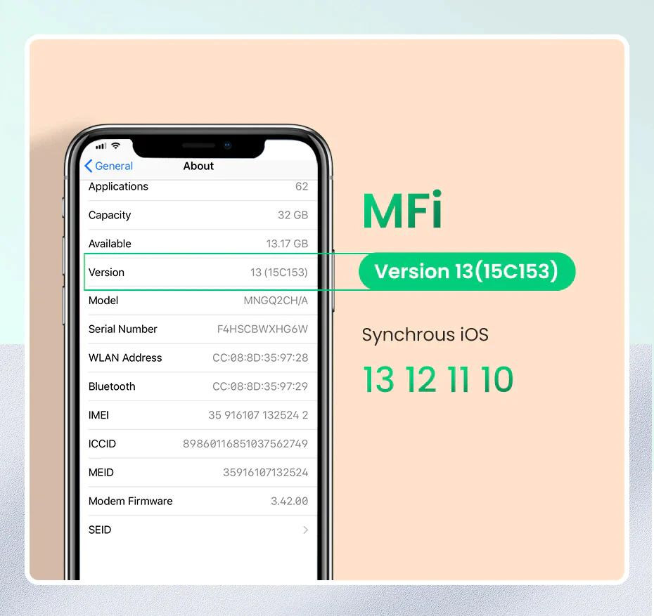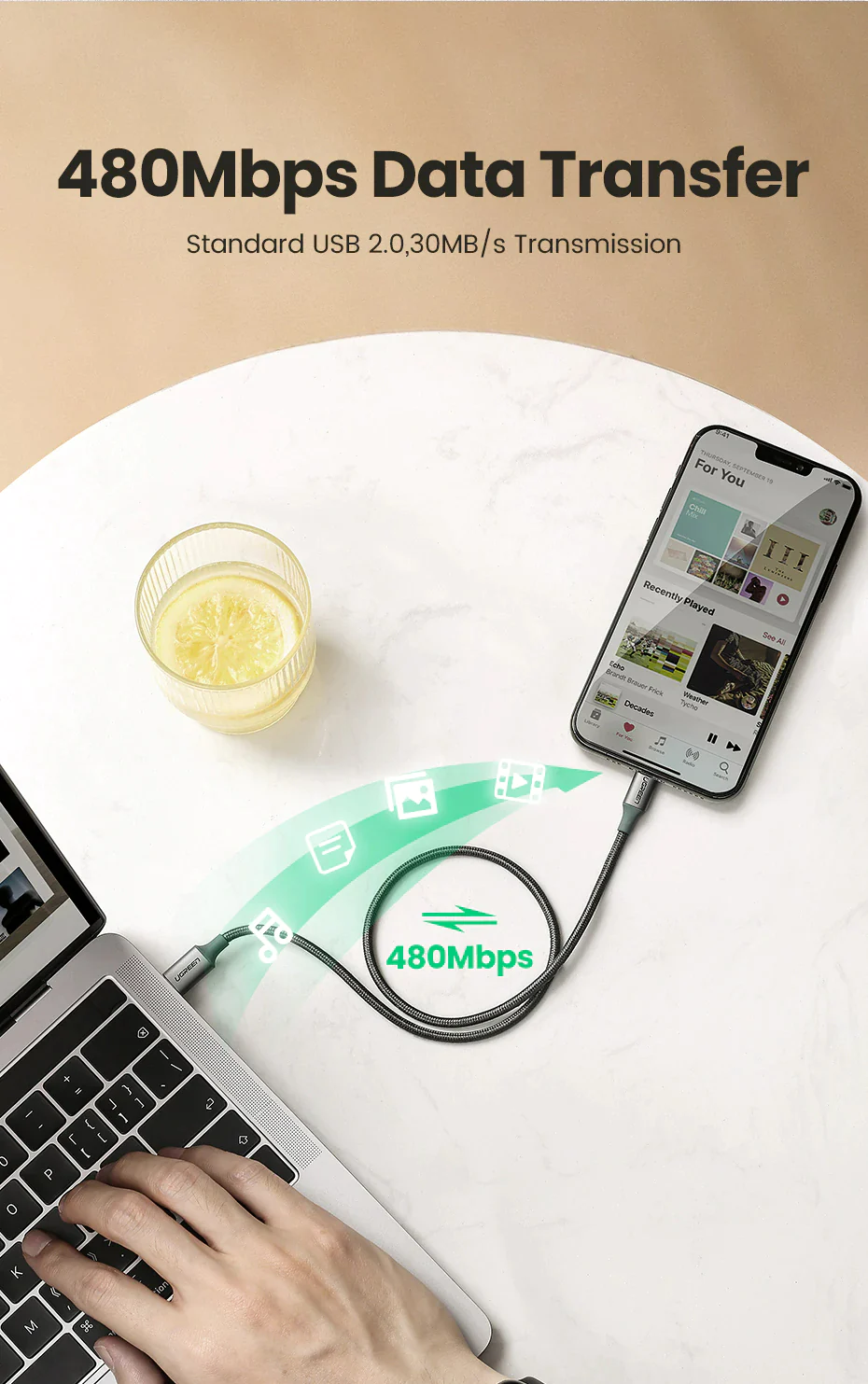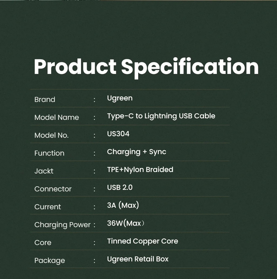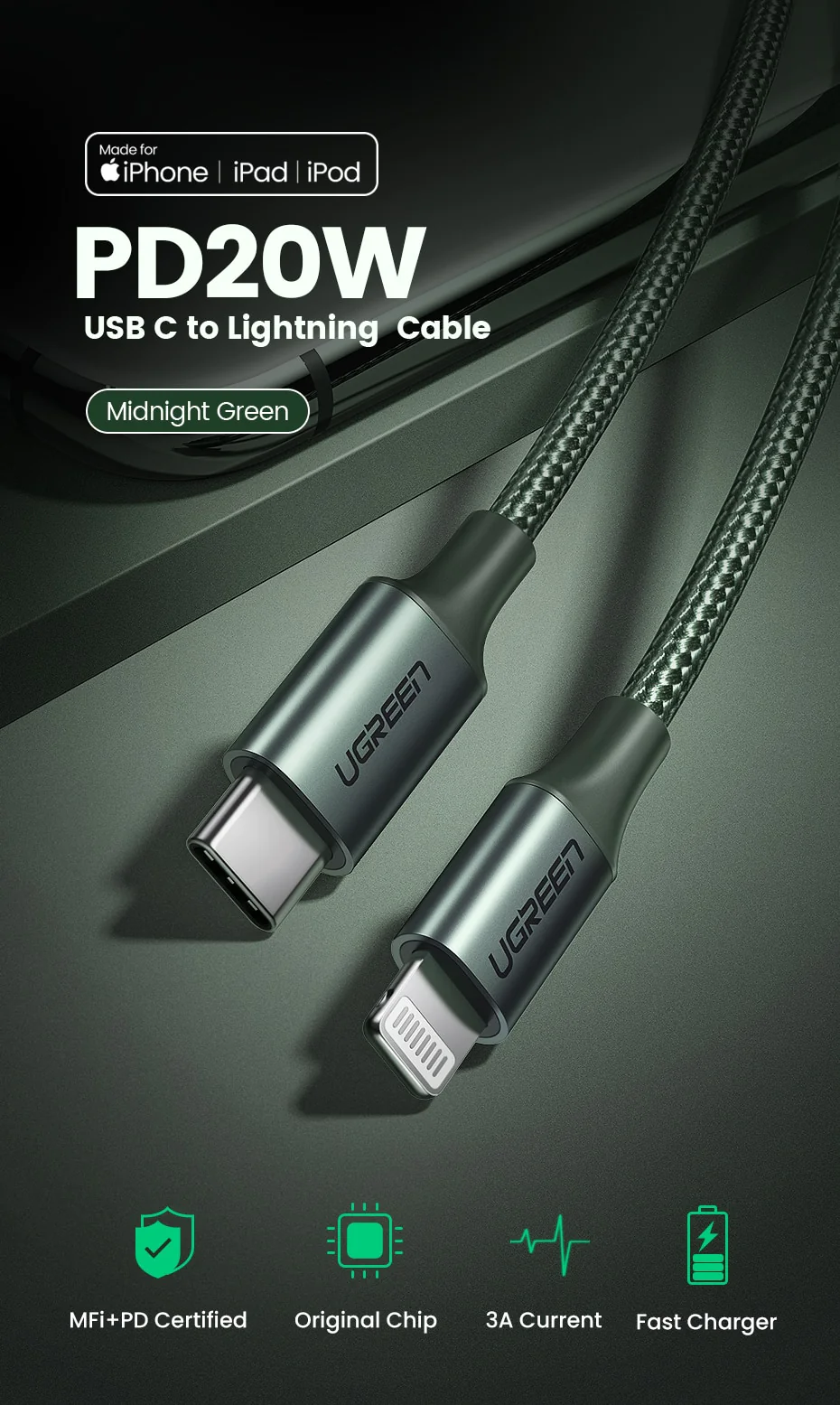 UGREEN MFi USB C to Lightning Charger Cable for iPhone 13 PD 18W 20W Fast Charging Data Cable for Macbook